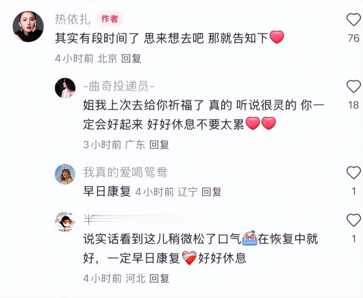 看到大家如此担心自己,热依扎发文后不久也回应了伤势。她表示其实已经有一段时间了,思来想去吧,那就告知下。